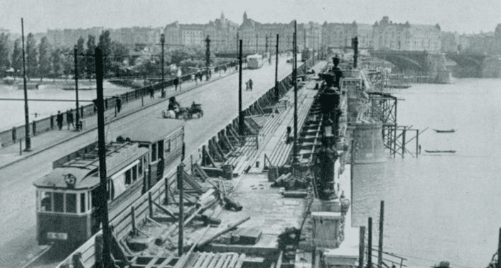 Строительство моста над островом Маргит в Будапеште
