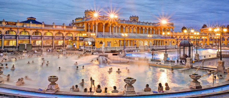 Термальні купальні Сечені варті того, щоб поговорити про них окремо. Ця локація — справжнє природне диво, оспіване в архітектурі. Купальні являють собою природні гарячі джерела. Вони розташовані в самому центрі Будапешта. Комплекс пропонує великий вибір басейнів, де підтримується різна температура. Архітектура купалень представлена в стилі неоренесанс. Вони нагадують величний палац.